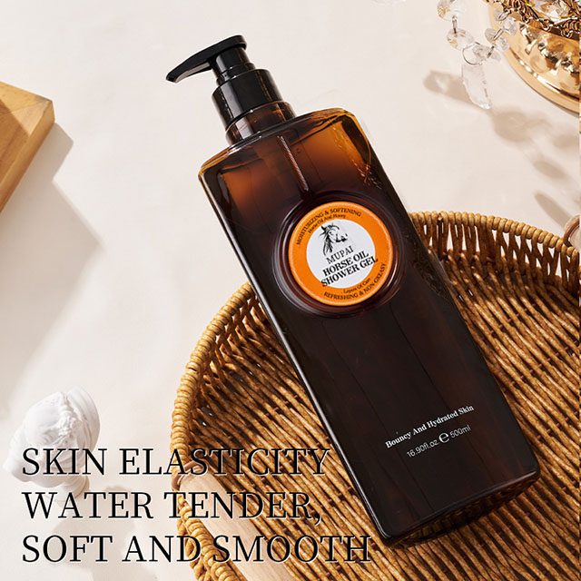 Horse oil helps lock in moisture, soften rough areas, and enhance skin resilience, leaving your body looking radiant, plump, and healthy. With continuous use, skin feels bouncier, more elastic, and visibly smoother. The refreshing fragrance lingers lightly on the skin, creating a relaxing and pampering bathing experience.