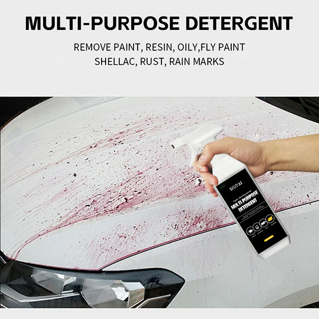 The Multi-Purpose Car Detailing Stain Remover is designed to tackle stubborn stains that ordinary washing cannot remove. Its powerful formula effectively dissolves oil stains, mud, tree sap, resin, paint residue, rust marks, rain stains, and fly residue from both the interior and exterior of vehicles.