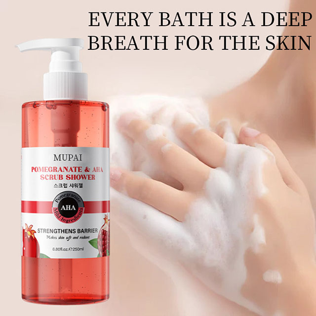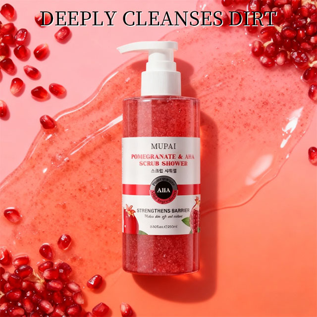 Transform your daily shower into a refreshing skin-renewing ritual with Pomegranate & AHA Scrub Shower Gel. This exfoliating body wash combines the power of pomegranate extract, natural scrub particles, and alpha hydroxy acids (AHA) to gently remove dead skin cells, unclog pores, and improve rough, dull skin texture.