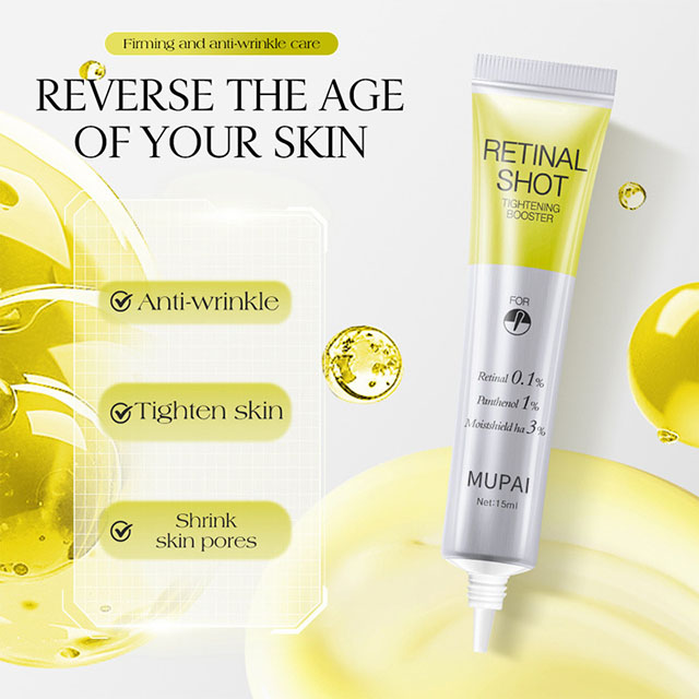 The Retinal Shot Tightening Booster Serum is an advanced anti-aging treatment designed to refine skin texture, improve firmness, and reduce the appearance of wrinkles. Powered by 0.1% retinal, it helps enhance epidermal thickness and strengthen the dermal support structure, visibly improving the depth of static wrinkles.