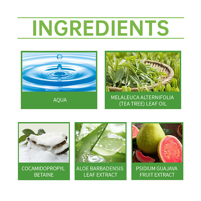 Ingredients | Tea Tree Oil, Cocamidopropyl Betaine, Aloe Barbadensis Leaf Extract |