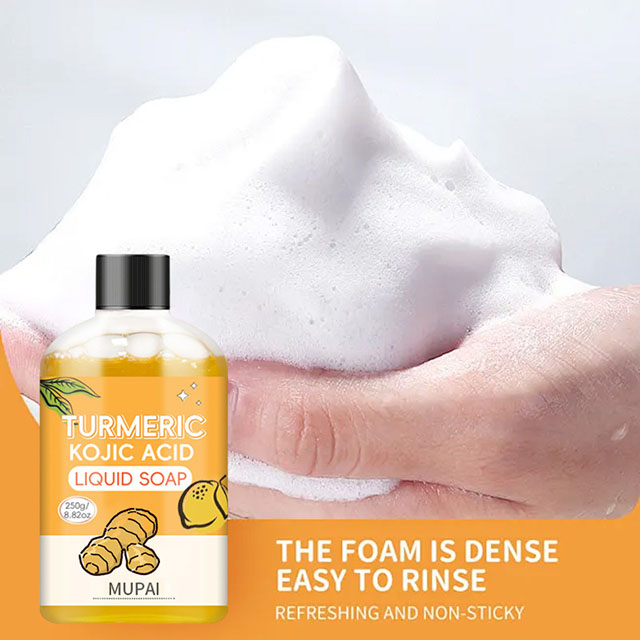 Reveal clearer, brighter, and healthier-looking skin with Turmeric Kojic Acid Liquid Soap. This refreshing and non-sticky cleansing formula creates a dense, creamy foam that deeply cleanses pores, removes impurities, and rinses off easily without leaving residue.