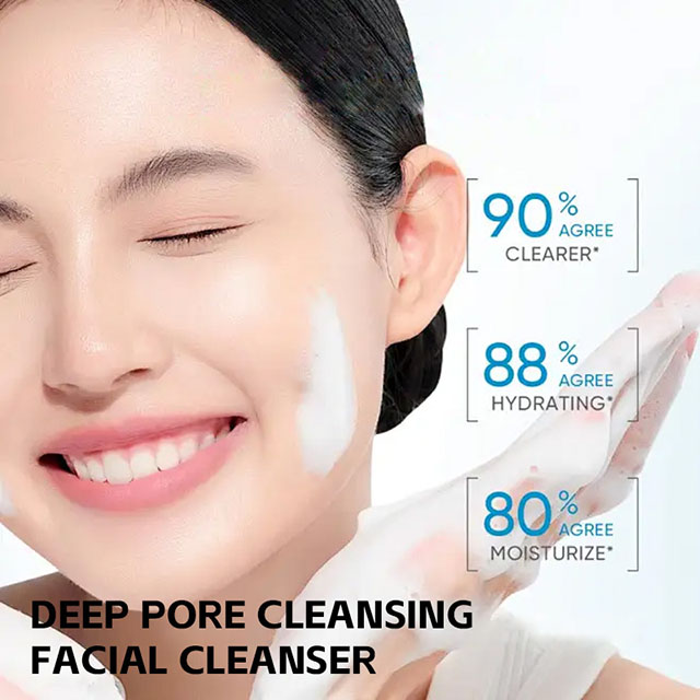 Despite its deep-cleansing power, this facial cleanser is formulated to be non-drying and skin-friendly. Clinical user feedback shows that 90% agree skin feels clearer, 88% agree skin feels hydrated, and 80% agree skin feels moisturized after use. It rinses off easily without residue and leaves the skin clean, smooth, and refreshed—never tight or uncomfortable.